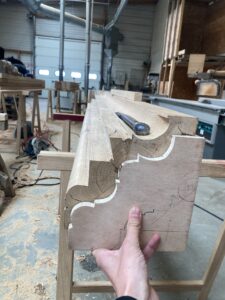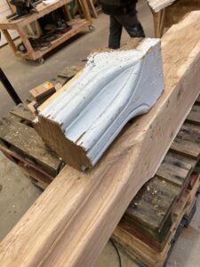 À noter: la restitution de la totalité des corniches et d’un entrait, avec fabrication à l’identique des moulures d’origine.